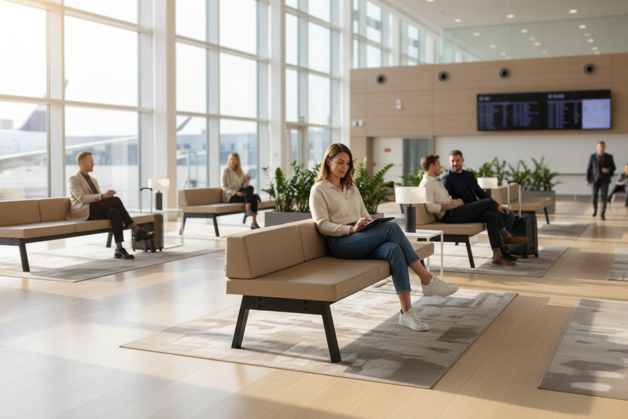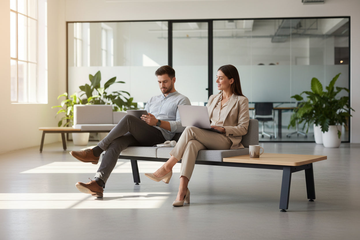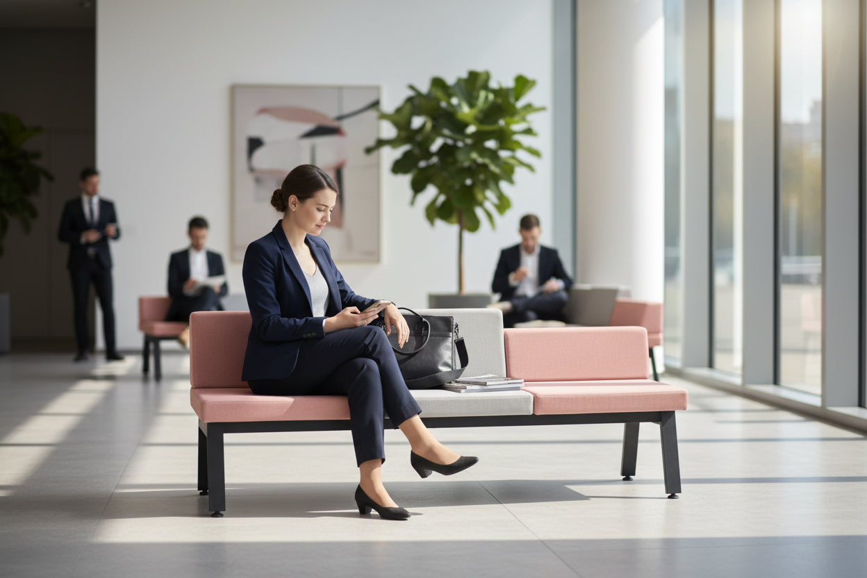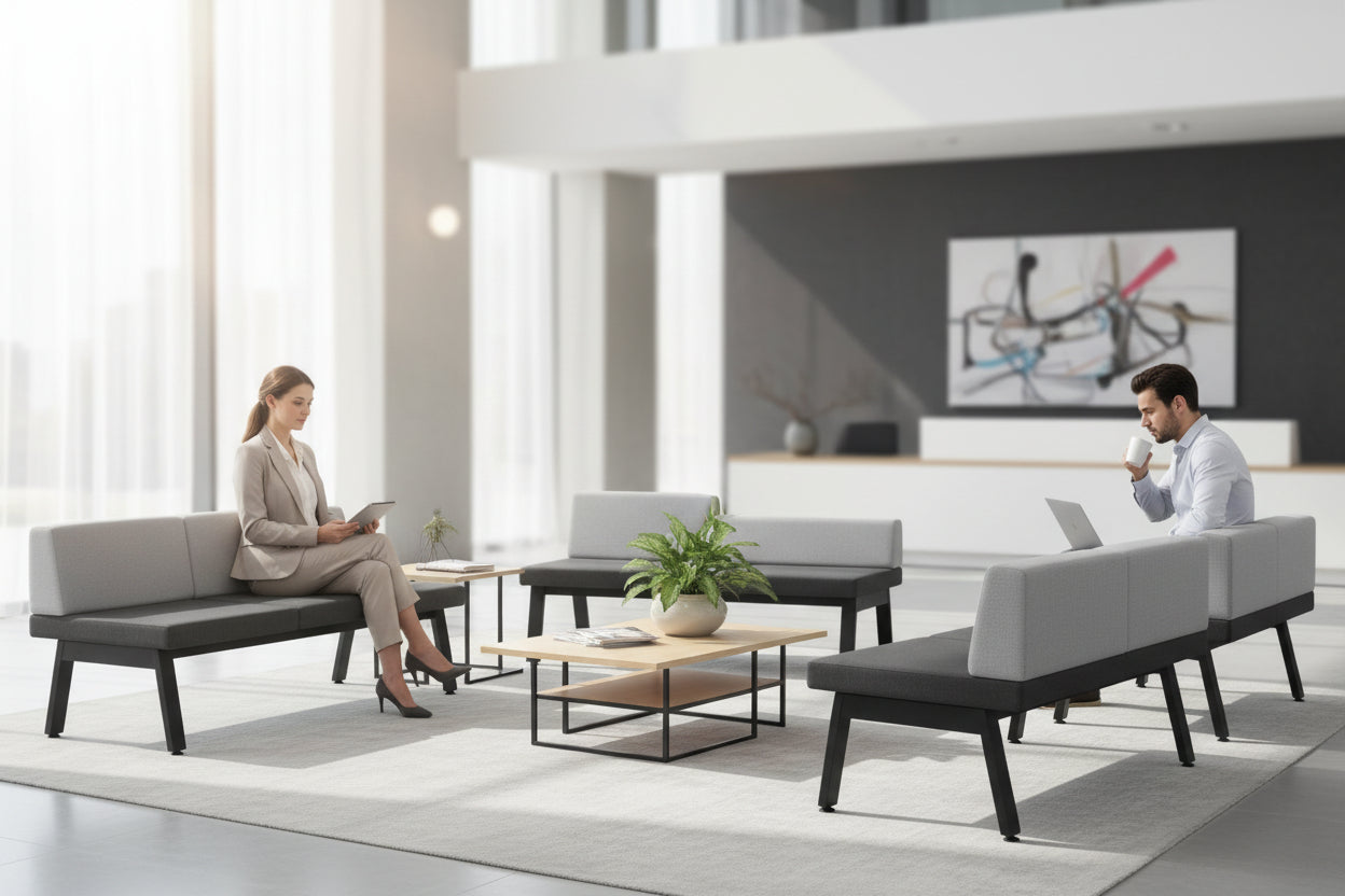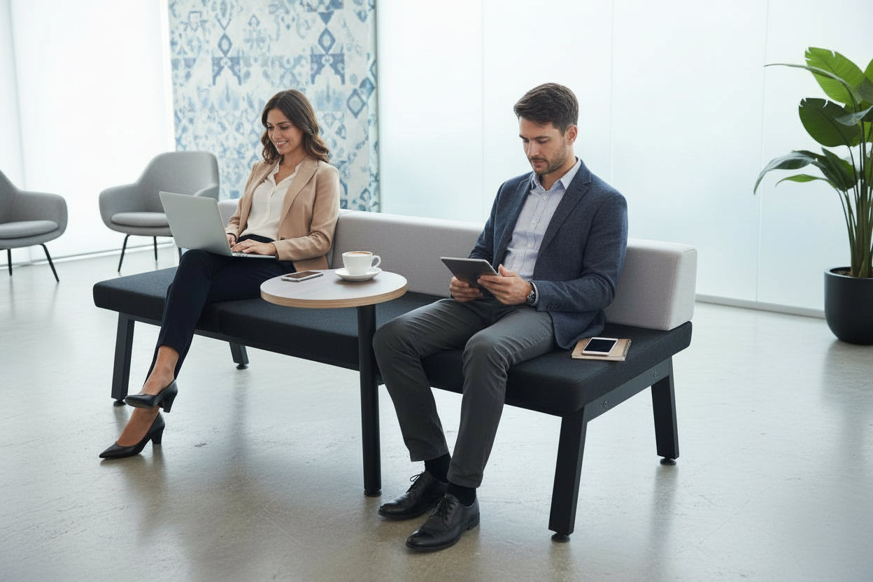 專為現代空間設計的 P SOFA 模組化桌板,具備高度的相容性,能精準嵌入沙發排列,將「休息」與「工作」機能完美整合。