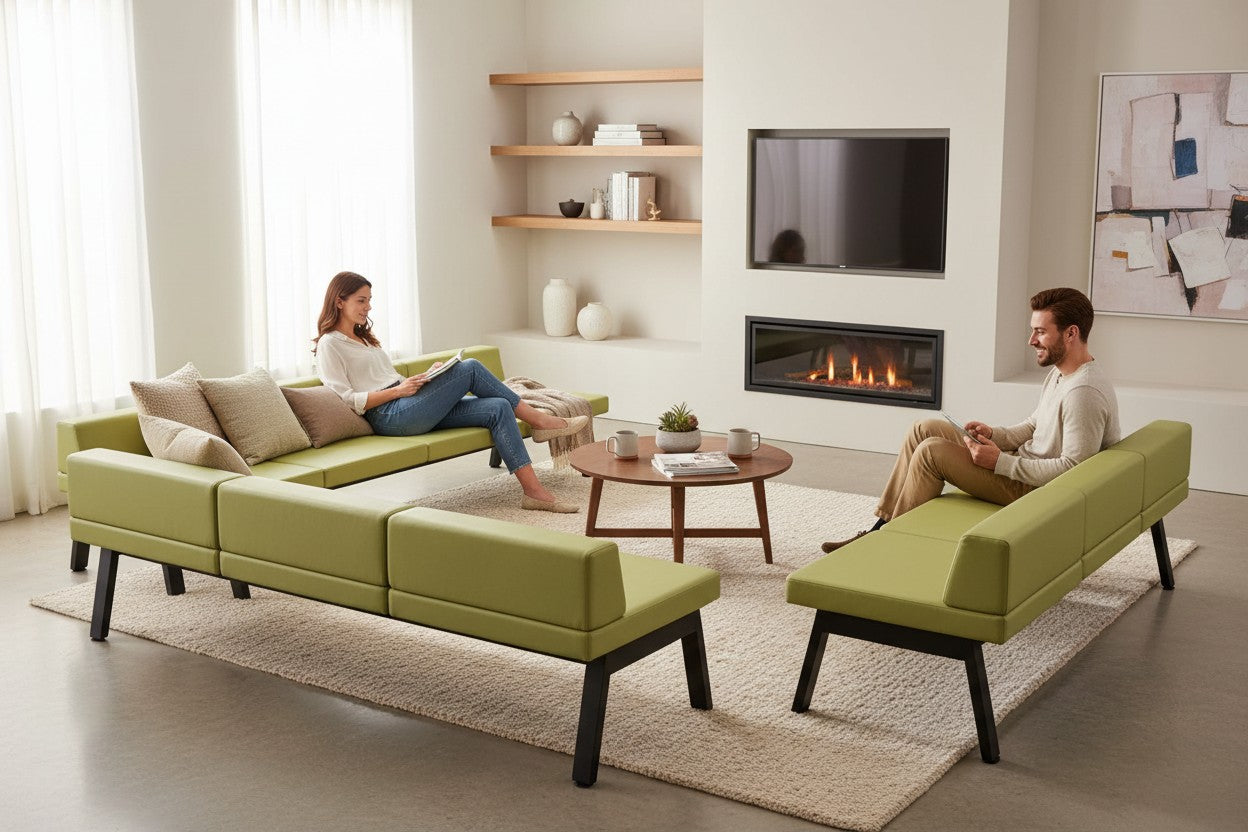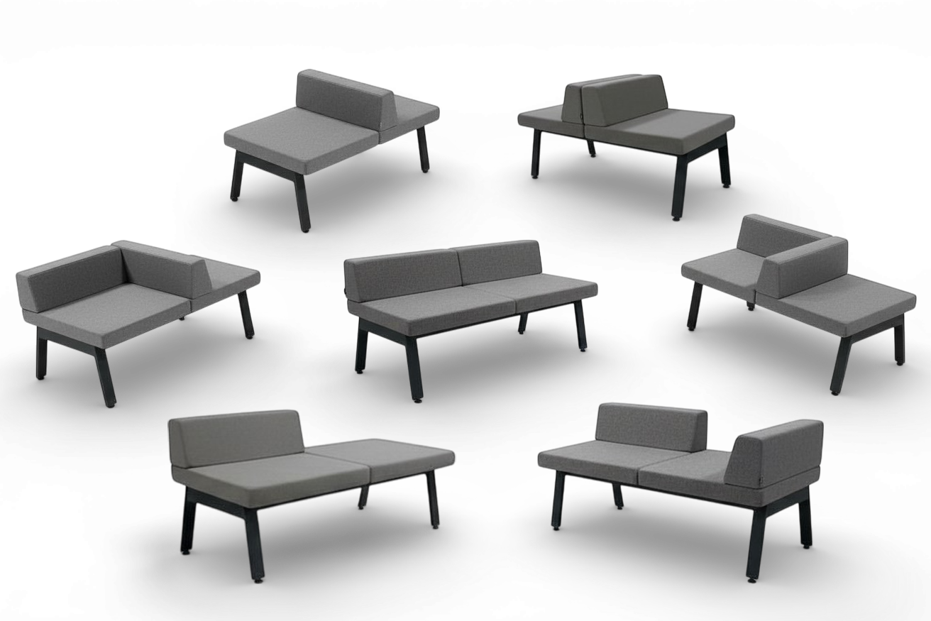 - 提供高背、低背、無背三種座墊款式,適用於客廳、辦公室或商業休憩區等各種場合。您還可以搭配多功能桌板,創造更多元的實用組合。