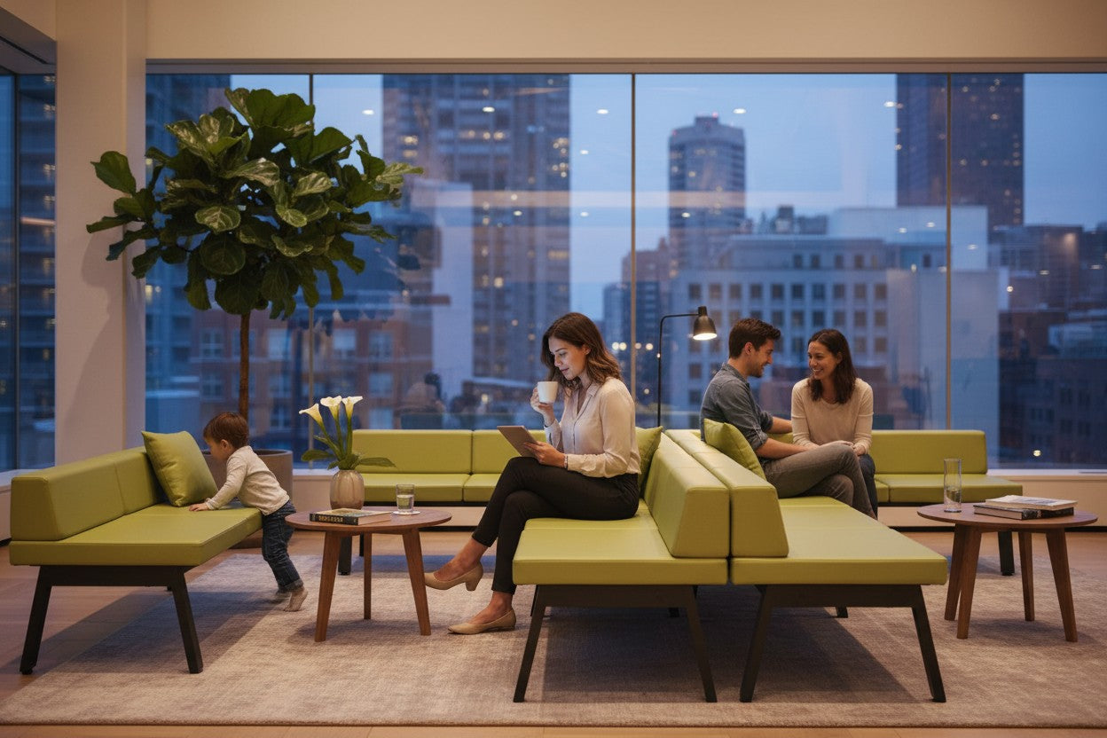 專為現代空間設計的 P SOFA 模組化桌板,具備高度的相容性,能精準嵌入沙發排列,將「休息」與「工作」機能完美整合。