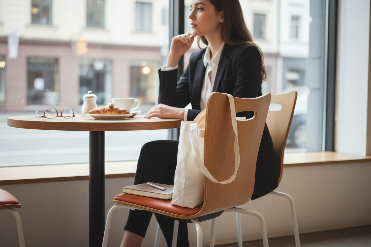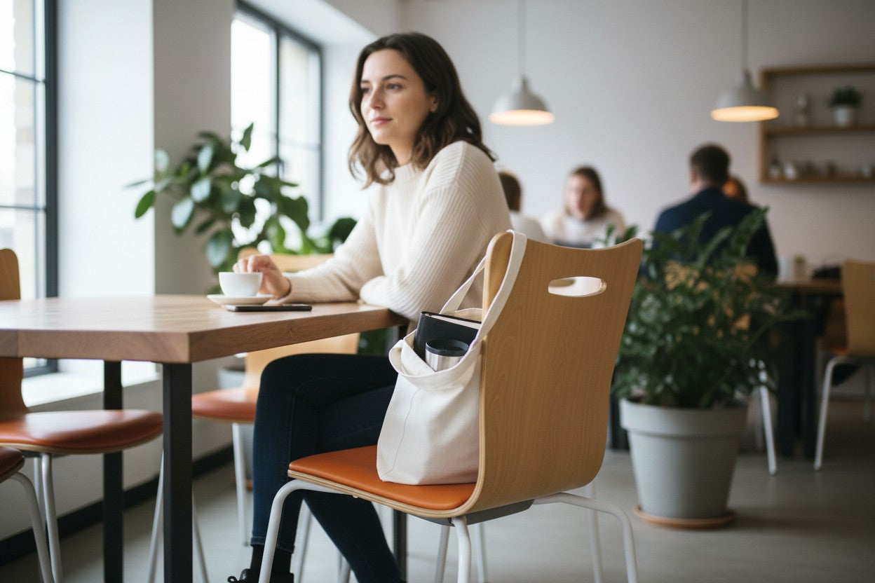柔和彎曲的椅背創造了一個巧妙的設計;略微內凹的輪廓,讓您可以輕鬆地將包包或提袋掛在椅子的任一側