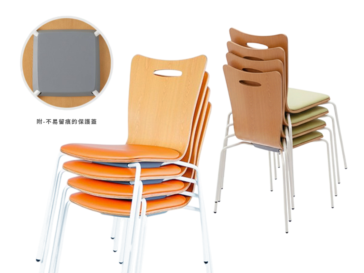 更換場地排列時,可將多張椅子垂直堆疊,節省占地空間,提高場地的彈性使用度,方便收納與管理