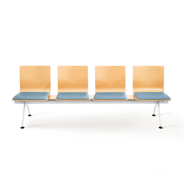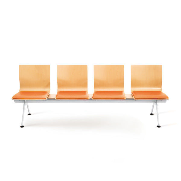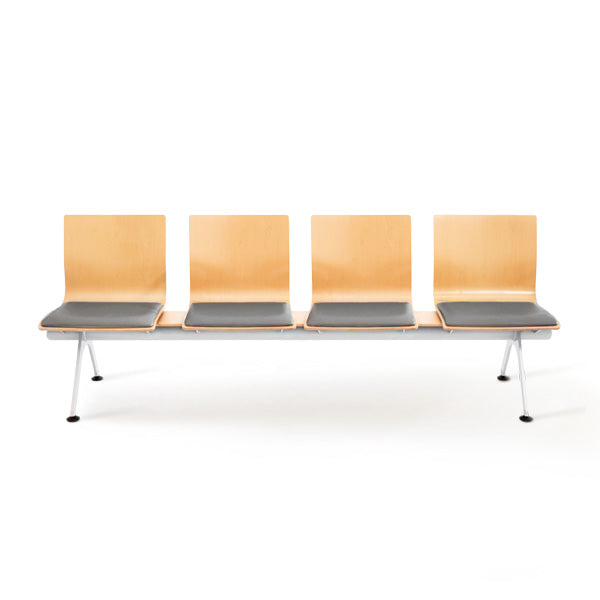 迷你大廳等候椅,椅子上台由曲木合板組成,質地堅硬耐久性高,椅子上台表面貼付木紋美耐皿,耐刮性好,座墊使用PVC皮革包覆泡棉,提供座椅的舒適性,非常適用於人來人往的公共空間。
